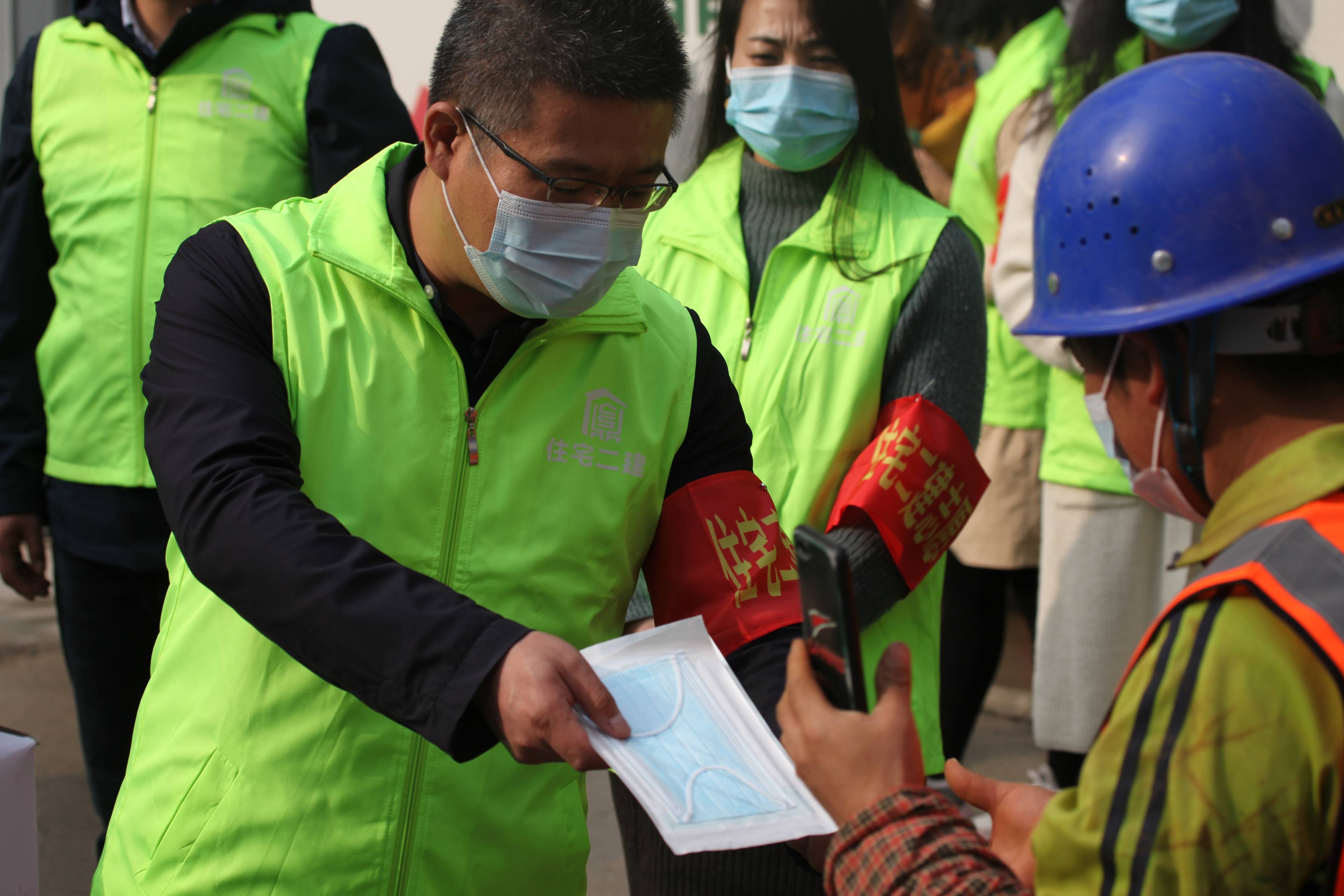 本次活動由公司副經(jīng)理杜軍同志和紀(jì)委書記尚進(jìn)同志帶隊(duì),志愿者一行16人,首先來到米家崖保障房項(xiàng)目工地,向項(xiàng)目工人宣傳了在當(dāng)前西安嚴(yán)峻的疫情防控形勢下,做好常態(tài)化疫情防控的重要意義,并組織工人學(xué)習(xí)各項(xiàng)防疫知識,例如:如何正確佩戴口罩以及七步洗手法等各項(xiàng)科學(xué)防控保護(hù)措施,倡導(dǎo)大家提升疫情防護(hù)的警惕性,切實(shí)做好個人日常防護(hù),防止疫情傳播蔓延。同時,志愿者還為工人們送上口罩、酒精、消毒液等防疫物資,叮囑大家做好自身防疫保護(hù)。