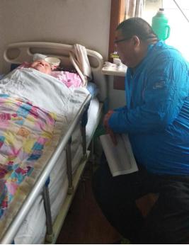 還有86歲的樊長奎老人,他不像王文謨老人精神狀態(tài)那般好,三年前因患腦梗一直癱瘓在床,生活不能自理,在樊長奎老人家中,柴紅軍坐在床邊握著老人的手噓寒問暖,詳細詢問、了解老人在醫(yī)療、生活等方面的情況,希望老人家身體健康,并向他送上了節(jié)日祝福和慰問。