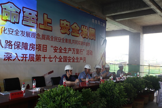 正值全國第十七個“安全生產月”,此次安全專項活動本著“生命至上、安全發展”的理念,為推動安全生產重點工作落實,推動安全理念深入人心,6月26日上午,西安市住房保障和房屋管理局在丈八路保障房建設項目一線施工現場開展了2018年“安全生產萬里行”專項安全教育活動,聚焦責任落實、科技強安、依法治安等方面的重點內容。 西安市第二住宅建筑公司積極承辦了此項活動,參加本次活動局屬房管處、保障處和保障中心的有關負責同志,還有開發總公司、經營一公司、經營二公司、經營三公司、工商業經營公司、住宅一公司、林華監理等單位負責安全管理的人員以及項目部各施工班組共計410余人。同時邀請中國安全健康教育中心安全應急科專職教官作了現場指導。